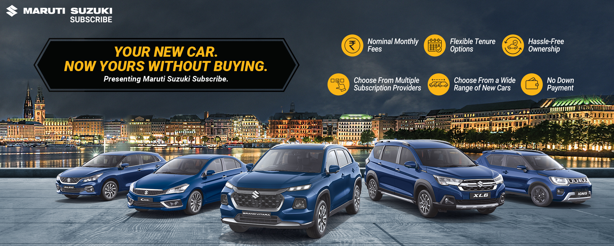 Maruti Suzuki Subscribe enables all customers to enjoy driving their preferred Maruti Suzuki cars without having to deal with all the financial responsibilities that come with owning a car.All you need to do is opt for a monthly subscription plan at a fixed monthly fee, which includes the routine maintenance and insurance costs, and choose a flexible tenure. At Sevoke Motors in, Sevoke Road, Siliguri, all Hatchback, Sedan, SUV, the MUV models line-up includes Baleno, Invicto, EVitara, Jimny, Ciaz, Ignis, Fronx, Grand Vitara, XL6. Here, you will enjoy Maruti Suzuki Subscribe benefits such as: